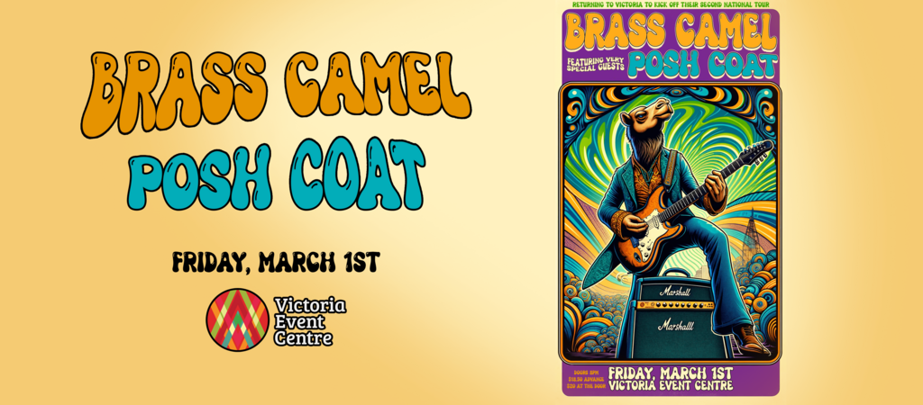 Vancouver’s sensational prog-funk quintet BRASS CAMEL kicks off their 10-week, second national tour in Victoria alongside rising Victoria band POSH COAT. Ride a train of incredible musicianship, lush harmonies and a infectious hooks.