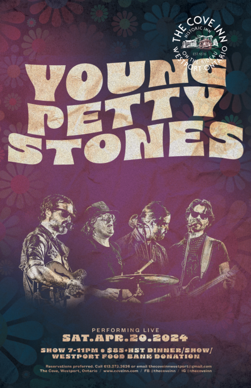 Join us for live music at The Cove on Saturday April 20th, 2024 from 7-11pm with the Young Petty Stones. A Musical Nod to Neil Young, Tom Petty and The Rolling Stones.