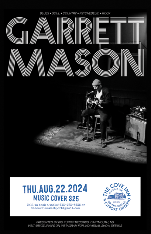 Join us on Thursday August 22nd, 2024 at The Cove Inn from 8-10pm for a performance by Juno Award winning blues artist Garrett Mason. $25 music cover.