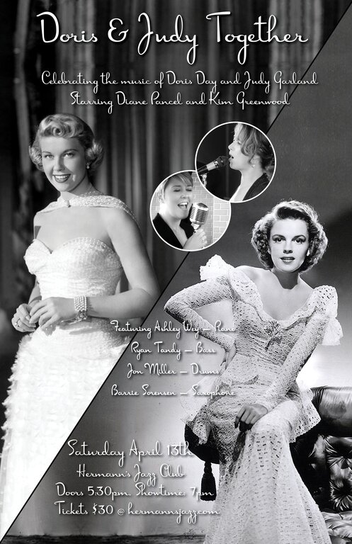Diane Pancel and Kim Greenwood bring you “Doris and Judy – Together”, a double tribute to musical icons Doris Day and Judy Garland, featuring Ashley Wey on Piano, Ryan Tandy on Bass, Barrie Sorensen on Saxophone and Jon Miller on Drums. Back by popular demand, this performance combines the best of the duo’s sold out 2022 shows, ‘A Sentimental Journey’ and ‘Over the Rainbow’, celebrating the 100th birthday of Doris and Judy.
