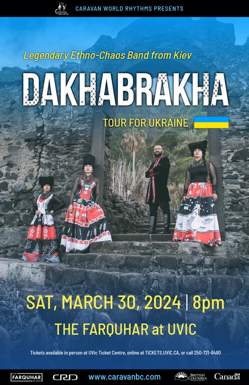 After selling out 2023 concerts in Vancouver and Victoria, DakhaBrakha is now touring its spectacular musical-visual performance back to B.C. The world-music quartet from Kyiv, Ukraine brings a powerful message of resistance and cultural pride to the Massey Theatre in New Westminster on March 29, and the University Farquhar Auditorium in Victoria on March 30. The program for this tour includes the hits of "DakhaBrakha" from six albums, as well as new tracks written during the current Ukraine-Russia war.