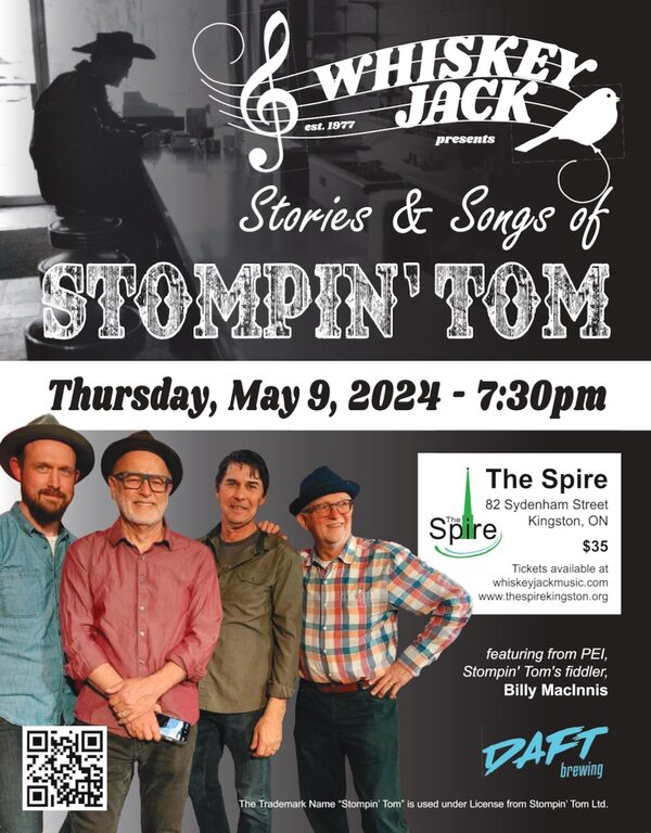 The Spire is very pleased to welcome “Whiskey Jack Presents Stories & Songs of Stompin’ Tom” to their 2024 program. The members of the band said to tell you, “we’re the real deal. No musicians in Canada have played more shows with Stompin’ Tom Connors than we have!” A fan recently described the show as a cross between Red Green and Vinyl Cafe. The humour and the charm is so Canadian it hurts. The band’s musical ride with Tom began in 1990 and included national tours, albums, TV appearances and many all night sessions filled with chess, songs and beer. You’ll hear all about it at this show.