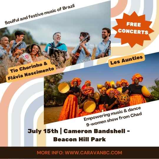 Experience a festive showcase of Brazilian regional music genres, including Choro, Samba, Forro, Bossa Nova, and Jazz. Flávia Nascimento & Tio Chorinho is an epic pairing of two of Canada’s top Brazilian roots music artists. Learn to dance to the various rhythms and explore Brazil’s original soul music along with original tunes!