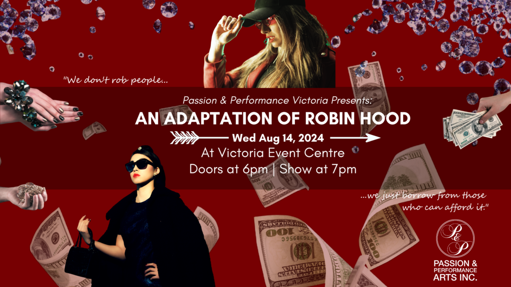 Step into a world where modern-day legends are forged in the crucible of corporate intrigue and community spirit! Passion and Performance proudly presents a fresh take on the timeless tale of Robin Hood, unfolding at the Victoria Event Center on Wednesday, August 14th.