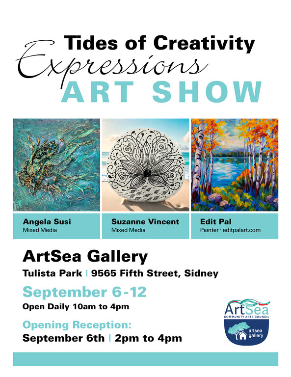 Please join us at our upcoming "Tides of Creativity, Expressions Art Show" at the ArtSea Gallery at Tulista Park from Sept. 6 - 12/24 ~ 10am - 4pm daily. We are 3 Peninsula artists who will be showcasing our unique styles of various forms of artwork. The show opens with a special reception from 2 - 4 pm on Sept. 6 where all three of us will be in attendance.