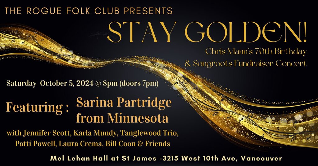 The Rogue Folk Club, SongRoots and Chris Mann are thrilled to present STAY GOLDEN! - Chris Mann's 70th Birthday & SongRoots Fundraiser Concert!