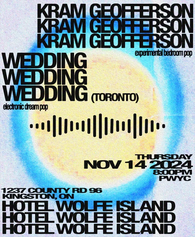 Wedding, Kram Geofferson @ Hotel Wolfe Island Nov 14 2024 - Dec 13th @ Hotel Wolfe Island