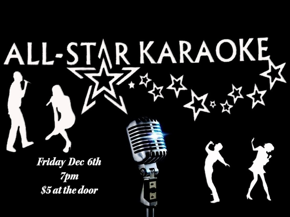 Come and sing your heart out with All-Star Karaoke. Friday Dec 6th, 7pm. $5.00 at the door.