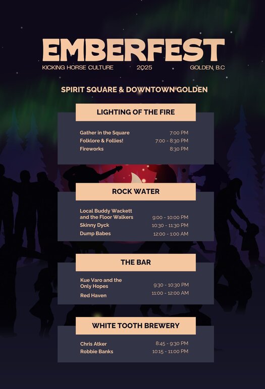Formerly known as the Snow King’s Masque Parade, our festival has evolved into EmberFest—a celebration of creativity, community, and connection. Join us on February 15, 2025 as we gather around the bonfire to share stories, skits, and artistic creations that reflect the spirit of our community. This year we are expanding the festival to include live music. 8 Bands will take to the stage following the fireworks and play into the wee hours of the morning.