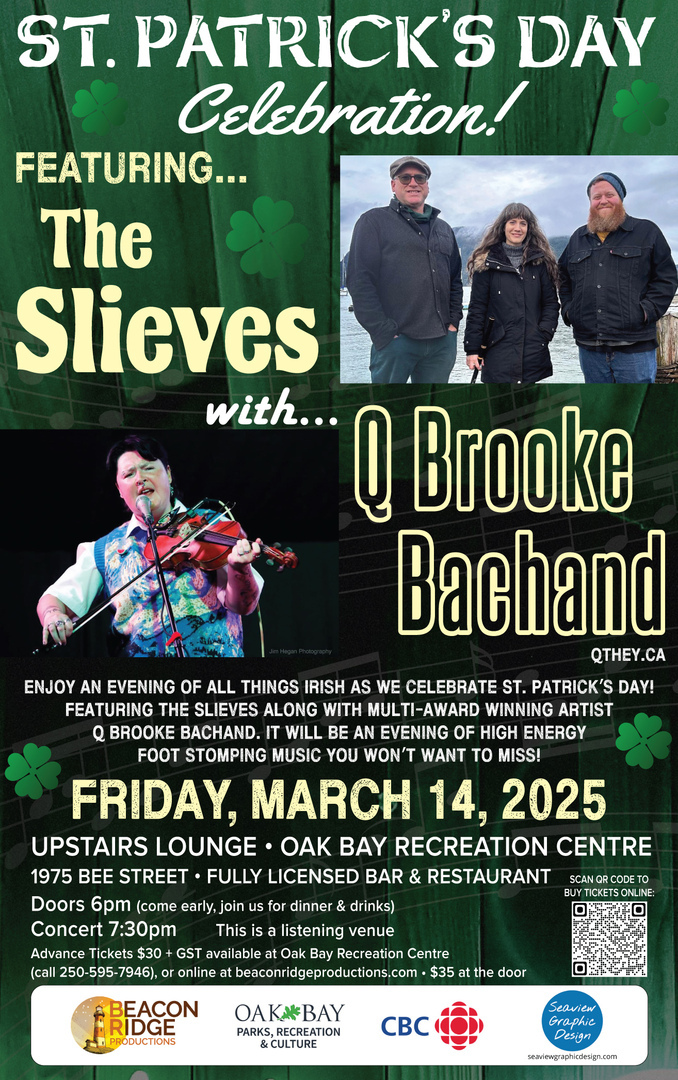 St. Patrick's Day Celebration with The Slieves and Q. Brooke Bachand - Jan 7th @ Oak Bay Recreation Centre, 1975 Bee Street