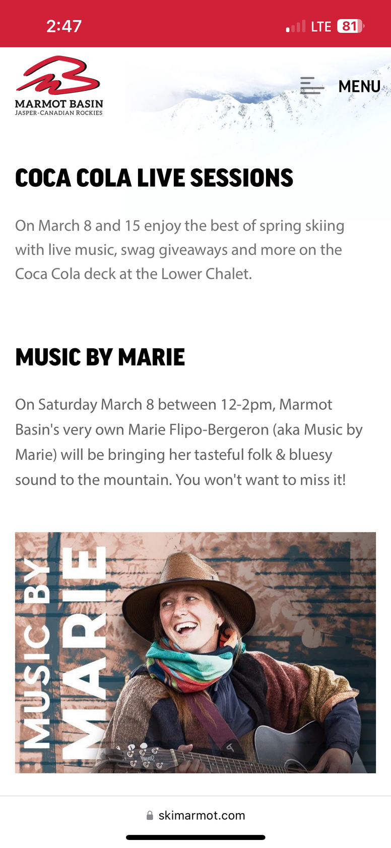 Coca cola live sessions - Jan 13th @ Marmot Basin