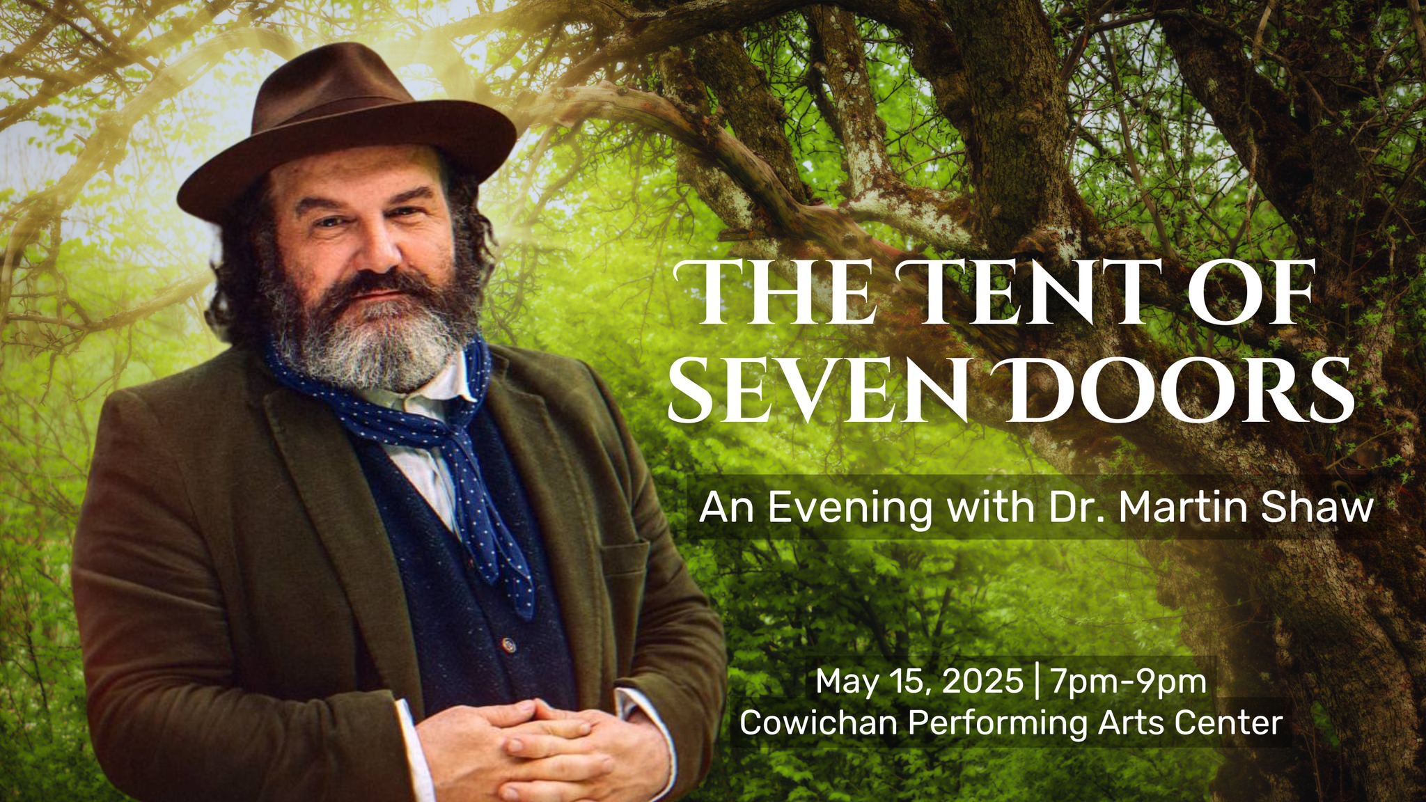 You’re invited to an evening of sacred stories, depth, and humor from one of the greatest storytellers roaming today. This will be an unforgettable descent into the wisdom tradition of myth and poetry. Over several hours, master UK storyteller Dr. Martin Shaw will open door after door into the secret inheritance you never knew you had.