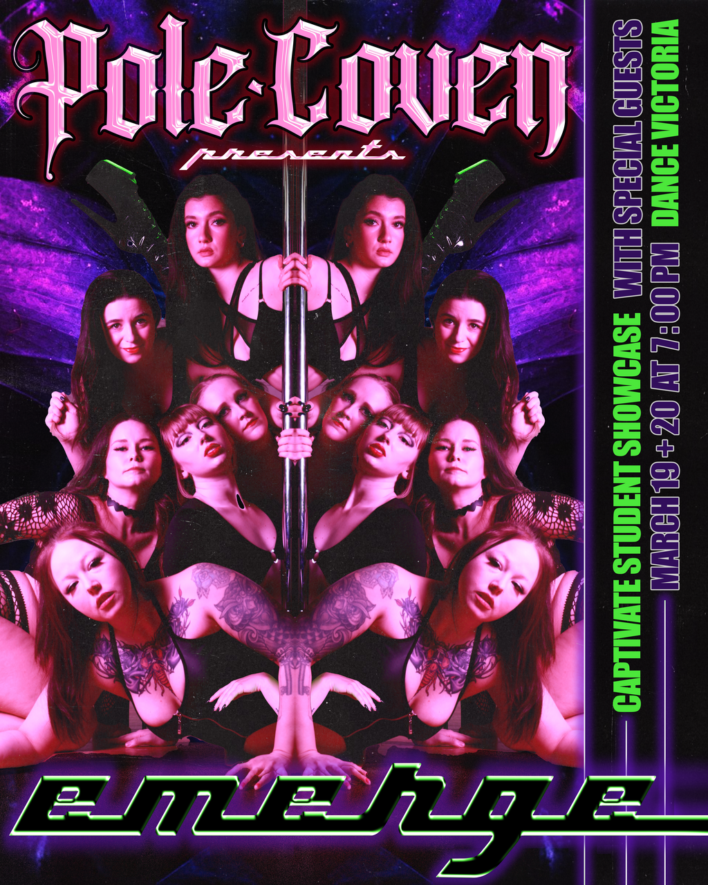 Join the Captivate performance program and guests for a spellbinding pole dance performance that explores the transformative journey through life's shadows and mysteries.