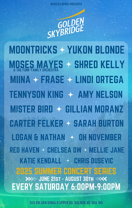 Menzies Music presents: 2025 Summer Concert Series - Jan 30th @ Golden Skybridge