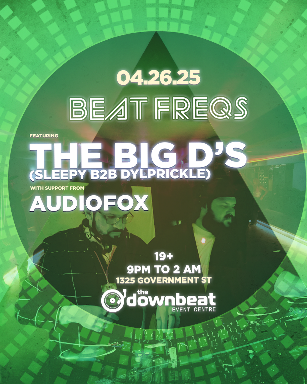 Beat Freqs is back with another evening of epic tunes brought to you by local legends. This time we have The Big D’s (aka Sleepy and Dylprickle) with a 3 hour b2b headliner set and Audiofox with an extended opening set. Get ready for a night of booty shaking bangers.