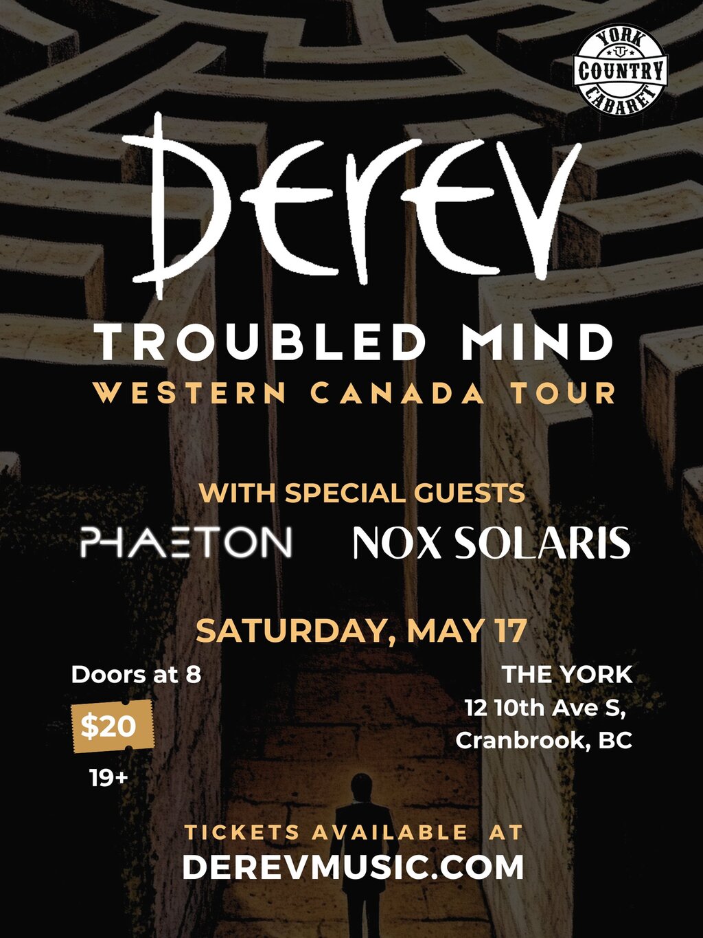 Toronto Prog DEREV touring across Canada in support of their new album "Troubled Mind," released on March 26th.