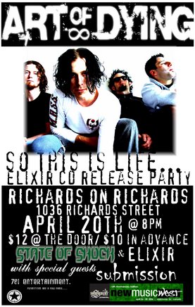78' Entertainment is proud to support and present Art of Dying, State of Shock, Elixir and Submission for a night of kick ass rock n roll, something that will fill up fast, so come early!!! DOORS ARE AT 8PM