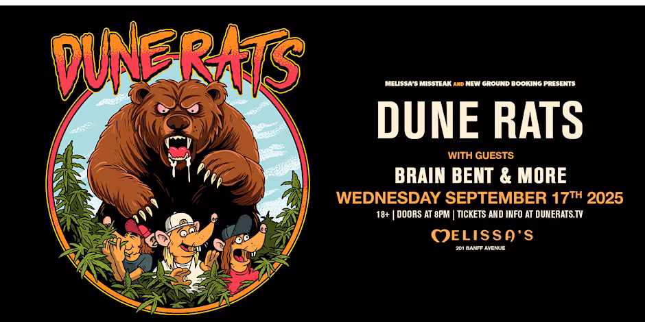 Get ready, Banff — the chaos is coming. On September 17th, Australia's wildest punk-rock export, Dune Rats, are crashing into Mel’s Bar for a night of pure, unfiltered mayhem. Known for their high-octane live shows, beer-fueled anthems, and don’t-give-a-f*** attitude, the Rats are bringing their signature blend of garage rock and surf-punk to the mountains, and it's gonna get loud.
