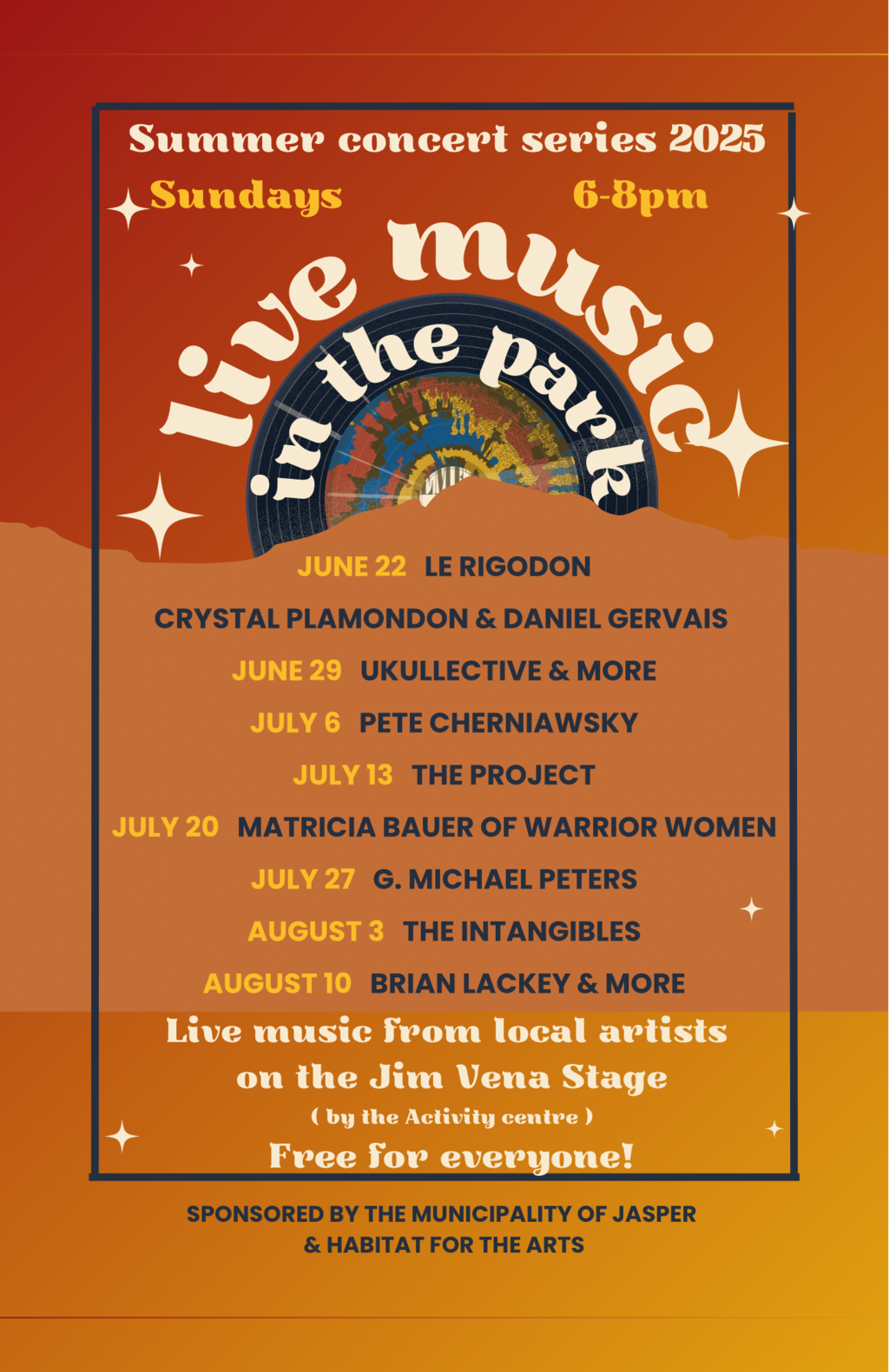 Sun. July 6th 2025 Jim Vena Stage Jasper Alberta Free