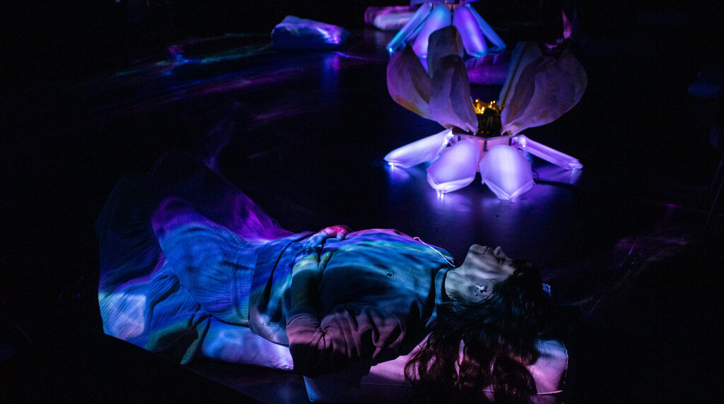 Lounging within a garden-inspired environment , participants interact with a custom web app on their personal mobile devices. Their responses to a series of playful questions reveal their relationship to change, resulting in a personalized digital experience within the app. Each participant receives a custom audio playlist and plant-inspired visuals that guide them through the experience. Together, the installation and web app consider the coexistence of technology and nature as a singular ecosystem, and how we are all potential instigators of change.