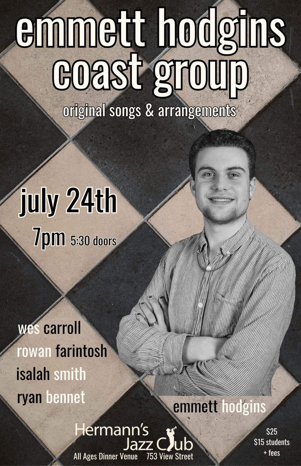 A Toronto based modern Jazz fusion group, consisting of members hailing from all over Canada as well as the world, Hermann's presents The Emmett Hodgins Coast Group is: