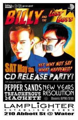 THIS SATURDAY! May 13th IMU & CiTR present Billy + The Lost Boys CD Release Party w/ Pepper Sands, New Years Resolution + Treacherous Machete @ The LAMPLIGHTER 210 Abbott Street . Doors 8pm / $10 -:- Info: 604 681 6666