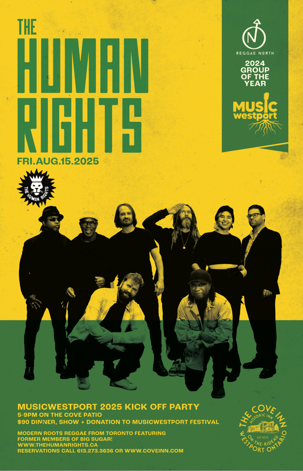 Toronto’s favourite Reggae sensation, The Human Rights will be moving the house and the patio dance floor like you can’t believe on Friday, August 15, 2025 for the annual MUSICwestport Festival Kick Off Party! Come for dinner and show and bounce to the Reggae music!