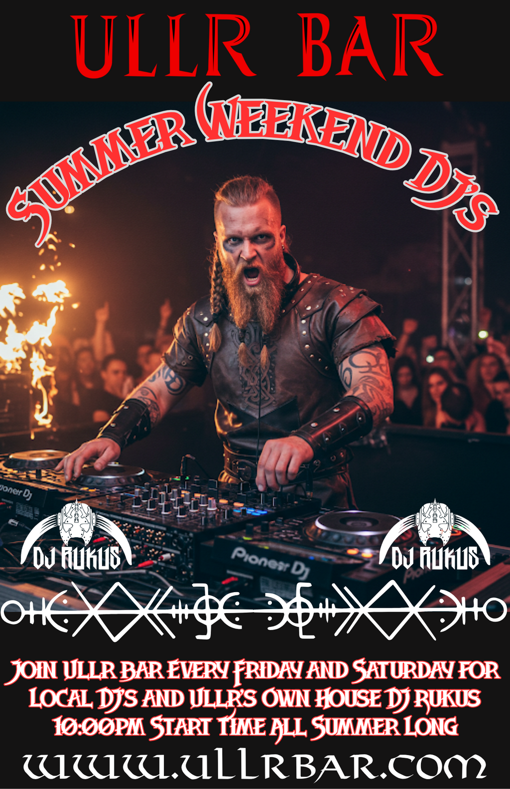 Summer is here and so is the Viking fun. Join Ullr’s house DJ Rukus and other local DJ’s all summer long. Every Friday and Saturday nights 10:00pm start time.