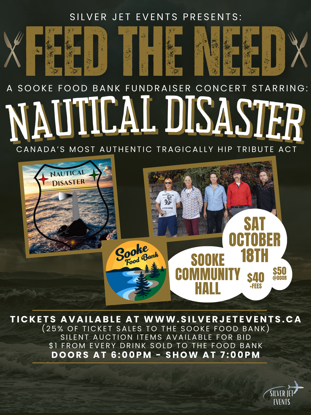 After an epic line-up of Summer gigs and festivals, sharing the bill with bands like Big Sugar, Trooper, Sam Roberts Band, The Glorious Sons and Nickelback, Nautical Disaster is bringing their unmatched Tragically Hip Tribute Act back to Sooke to help fill the shelves of the Sooke Food Bank.