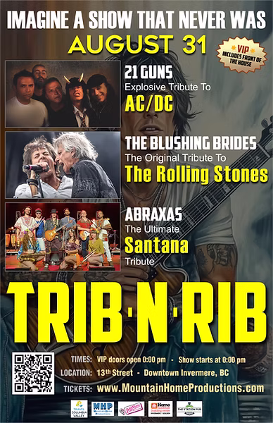 Imagine a concert with AC/DC, The Rolling Stones, and Santana—all in one epic night! The Trib-N-Rib Concert on August 31st is bringing these legendary bands to life with 21 Gun Salute, The Blushing Brides, and Abraxas, all while celebrating the end of summer with a rib festival like no other! Get ready for an explosive night of music and mouth-watering BBQ, as these tribute bands deliver the ultimate experience of iconic rock and classic hits.