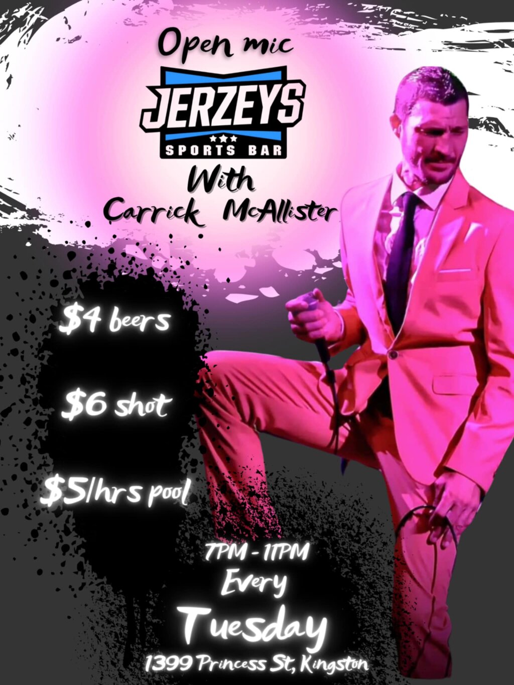 Open Mic: Carrick McAllister @ Jerzeys Sports Bar Nov 4 2025 - Jan 9th @ Jerzeys Sports Bar