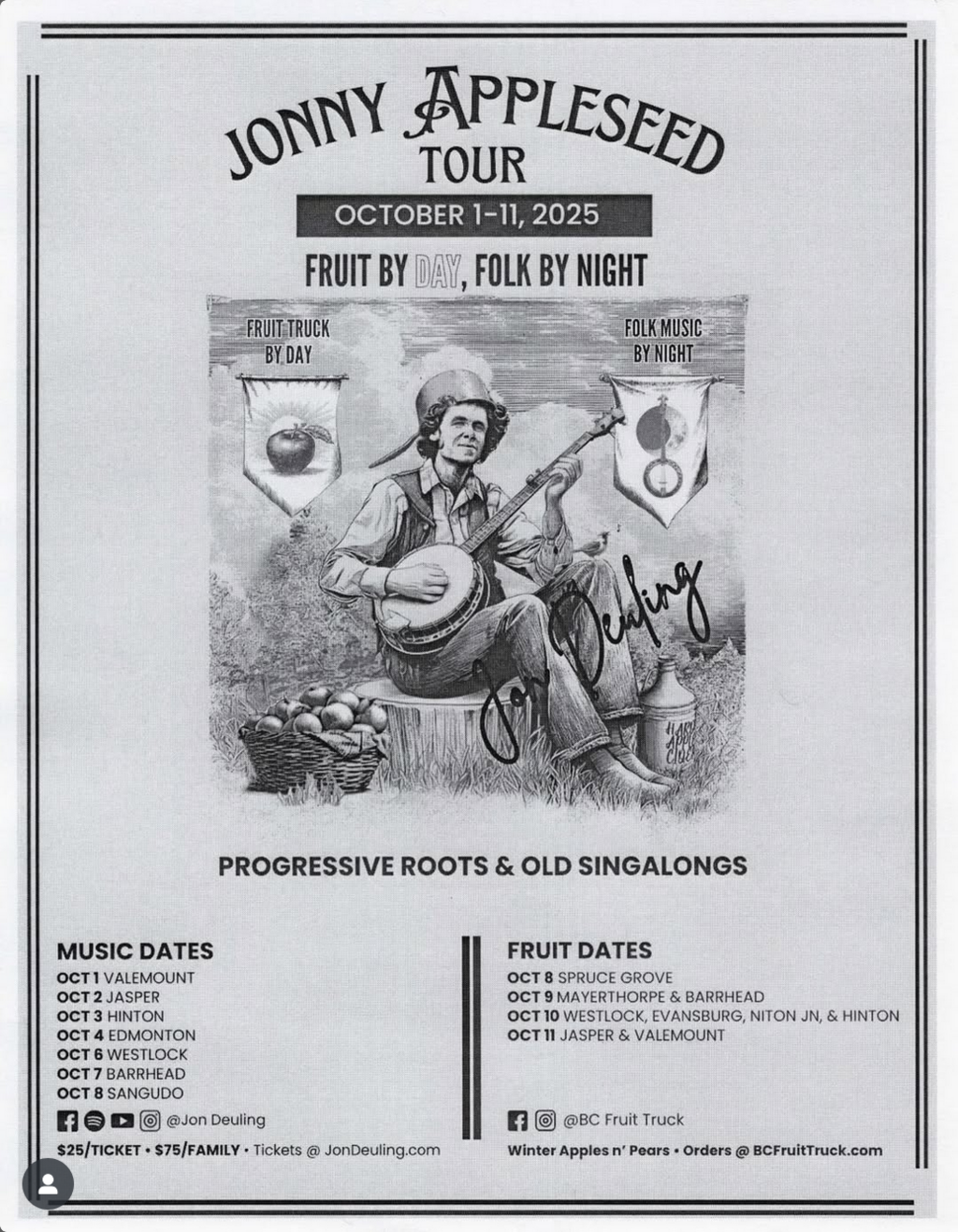 We’re excited to welcome the Jonny Appleseed Tour to Jasper on October 2 β€” part of a journey through Western Canada mixing progressive roots and old singalongs.