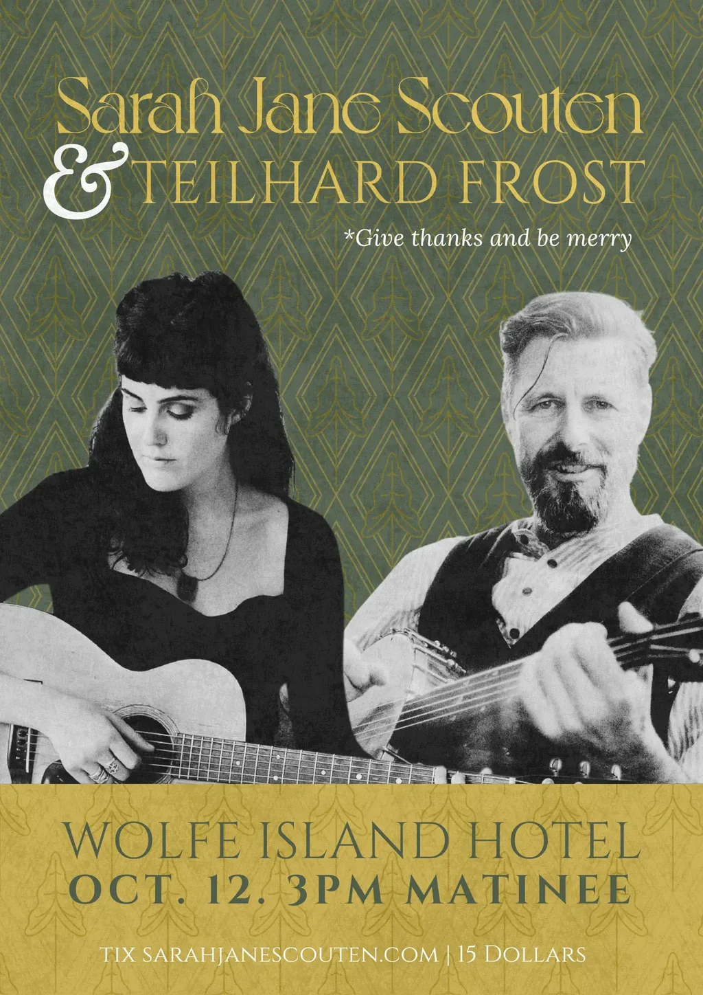 Sarah Jane and Teilhard will be performing a mixture of traditional and original songs, together and solo on this Thanksgiving Weekend afternoon at the Wolfe Island Hotel.