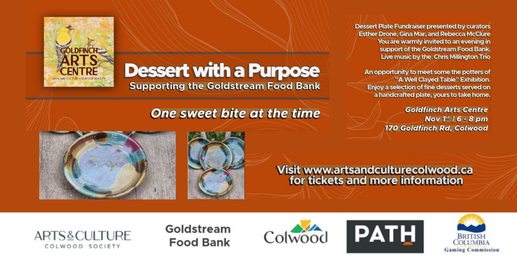 Each potter has donated 1 or more lovely handmade plates for this fundraiser for the Goldstream Food Bank. We will feed you an assortment of sweet treats to place on your handmade plate that you can take home with you.