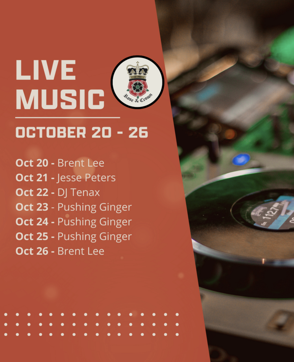 Sat. October 25th 2025 The Rose and Crown (Banff) Banff Alberta Free