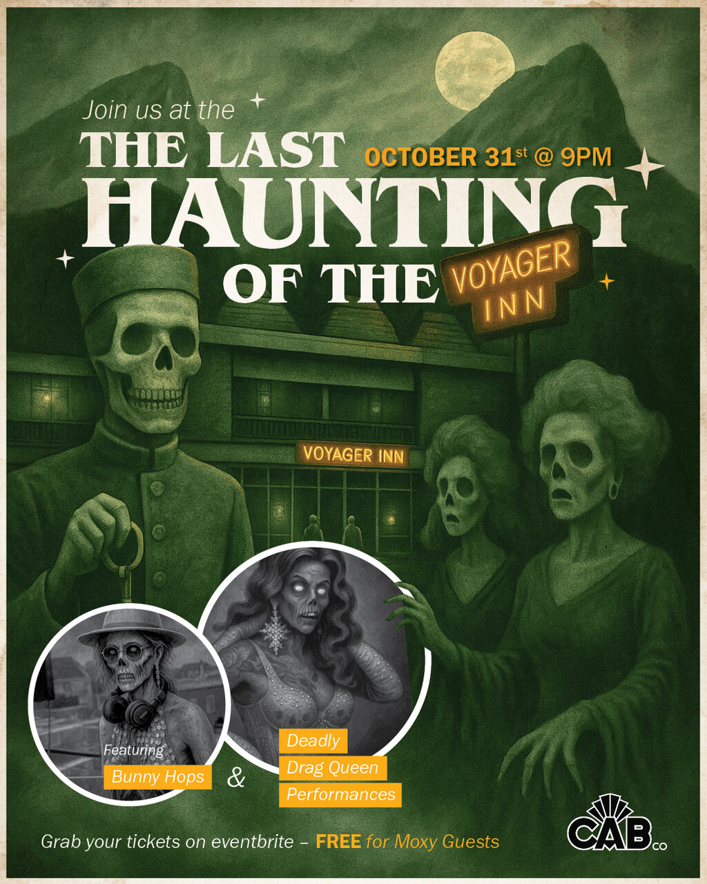 Moxy Banff will bring the chills with a spooky The Shining themed drag party filled with eerie glamour, haunting performances, and killer vibes. Bunny Hops will keep the crowd moving with dark disco beats all night long for a haunting farewell no one will forget.