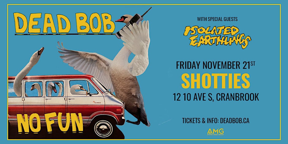 Get ready, Cranbrook — Dead Bob is hitting the stage at Shotties with special guests Isolated Earthlings!