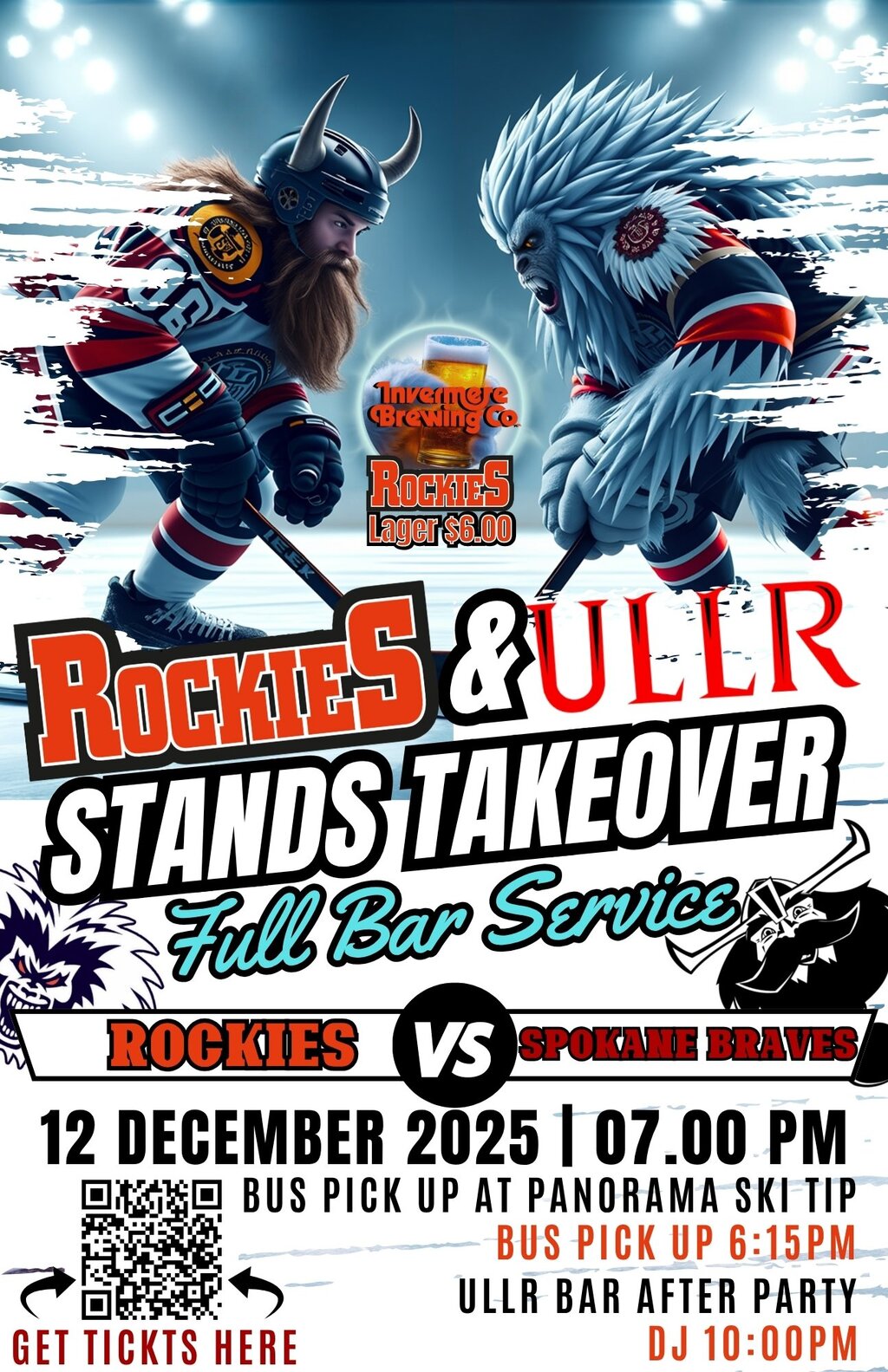 At Eddie Mountain Memorial Arena, the Columbia Valley Rockies will be taking on the Spokane Braves at 7PM. Ullr Bar’s Viking warriors will be slingin’ drinks and pumping up the crowd up with Invermere Brewing Company and we want to see (and more importantly) hear all of our Vikings out there in the crowd!