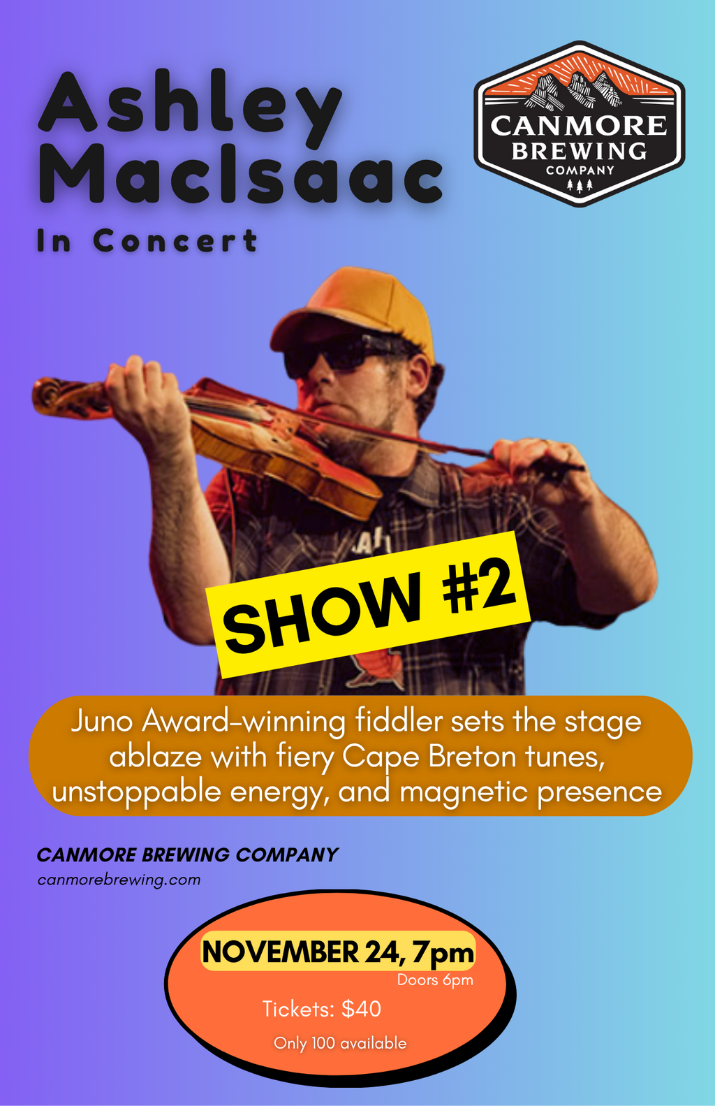 Ashley MacIsaac in Concert - Show #2 - Feb 1st @ Canmore Brewing Company