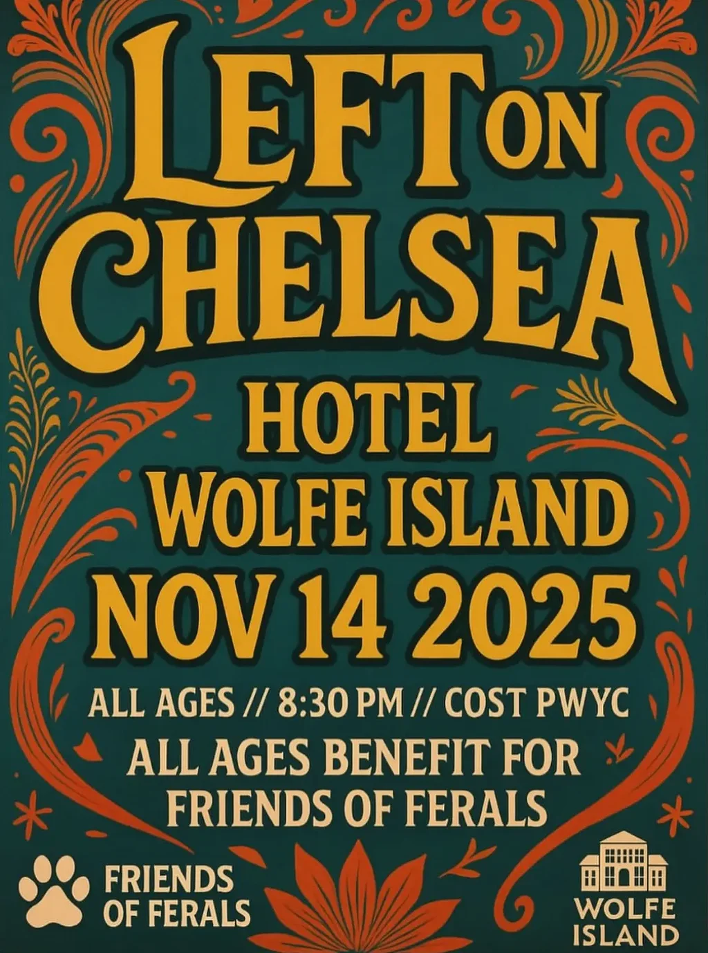 Come on over to Wolfe Island on Friday, November 14 for an all-ages evening of original music in support of Wolfe Island Friends of Ferals!