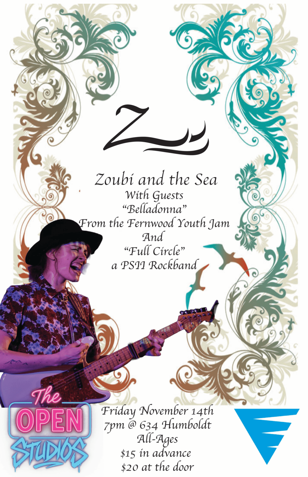 An All-Ages Live Music performance with well-loved local band Zoubi and the Sea, accompanied by some of the rising stars in the Victoria youth music scene "Jodi and Catalina" from the Fernwood Youth Jam and "Full Circle" a rock band from the Pacific School of Innovation and Inquiry!