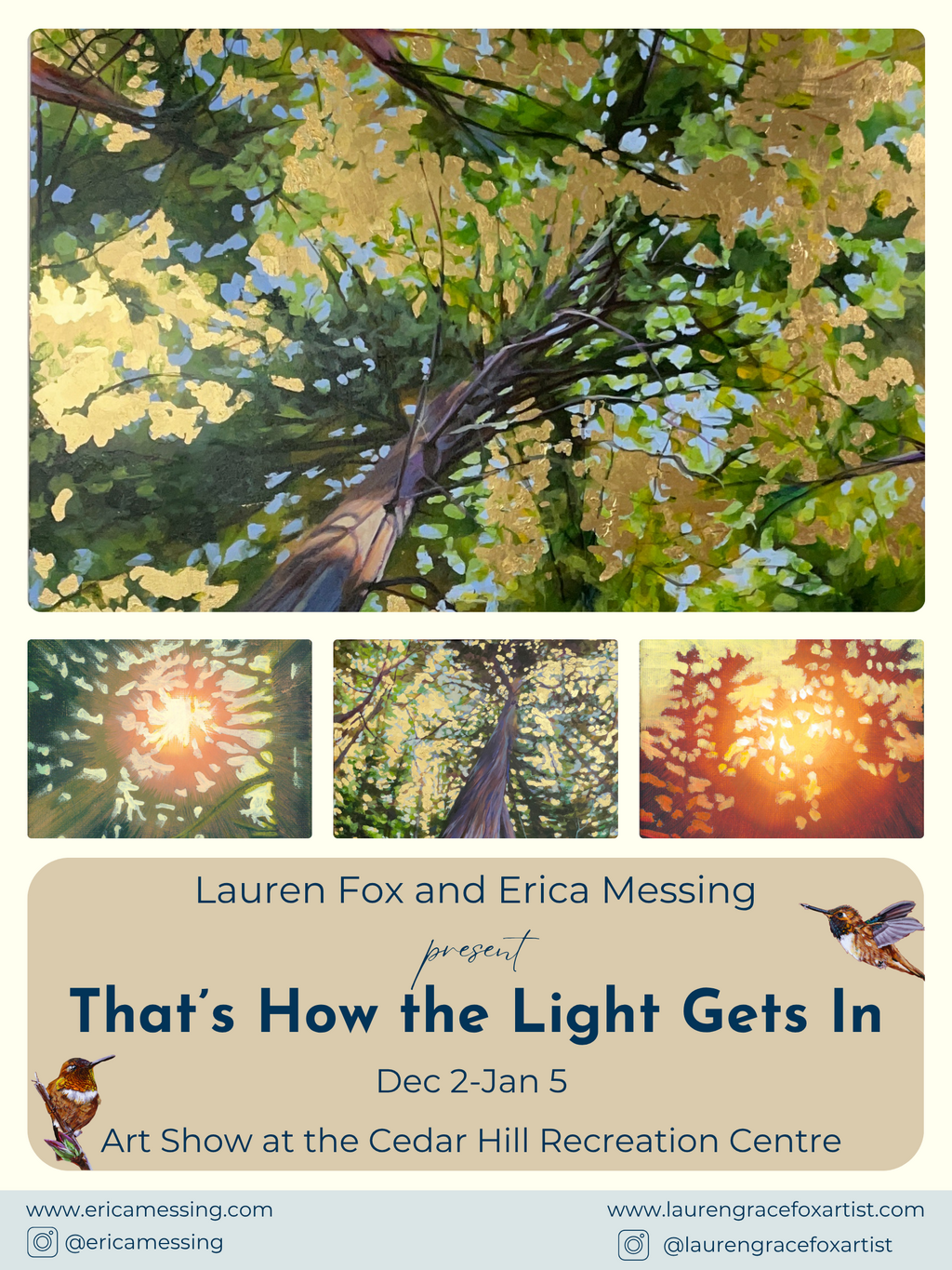 That’s How the Light Gets In - Jan 11th @  Art Centre at Cedar Hill - CACGV Main Gallery