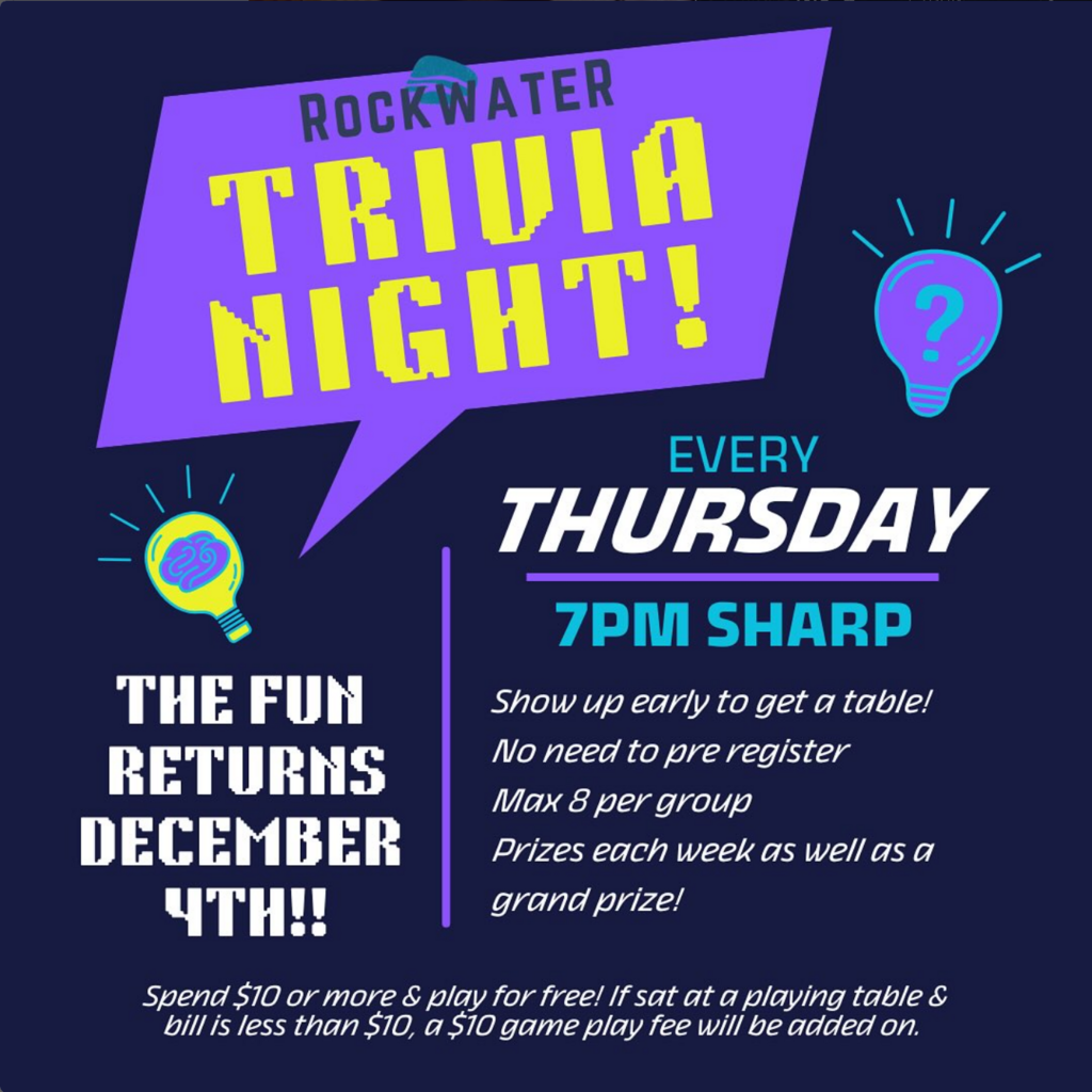 Rockwater Trivia Night - Feb 15th @ Rockwater Grill & Bar