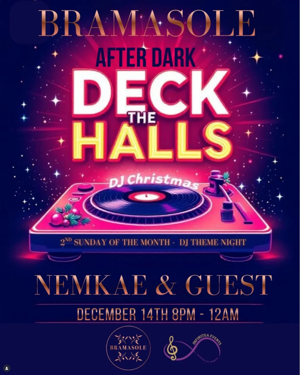 Decembers theme is 'Deck the Halls' where one of our favourites Nemkae and his faithful DJ sidekick will be playing a festive set featuring just a touch of some Christmas classics and other beats to get you in the holly jolly mood this season.