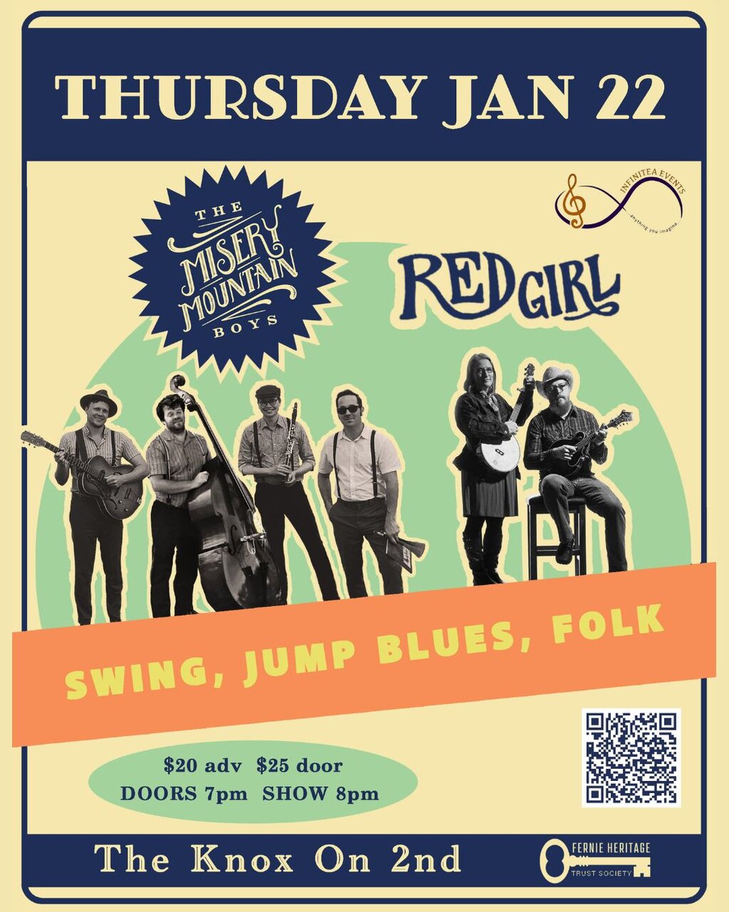 MAIN STAGE is The Misery Mountain Boys - You might hear the tunes of the Misery Mountain Boys drifting from behind a rotating bookcase of a 1930’s speakeasy. Harkening back to a simpler time, the MMB’s create a collaborative soundscape infused with tongue in cheek wit, playfulness, and nostalgia. With a mix of catchy originals and contemporary songs reimagined in driving swing, the band’s performance delivers as both classic and fresh, offering a generous variety of sweaty jazz numbers, velvety love songs, and swingin' jump-blues.