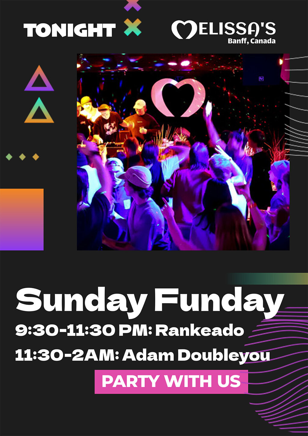 It’s that time of the week for Banff’s Biggest Sunday Funday! Come with your dancin’ shoes & drinkin’ pants on for this one!!! 🍻🪩🥃🎉