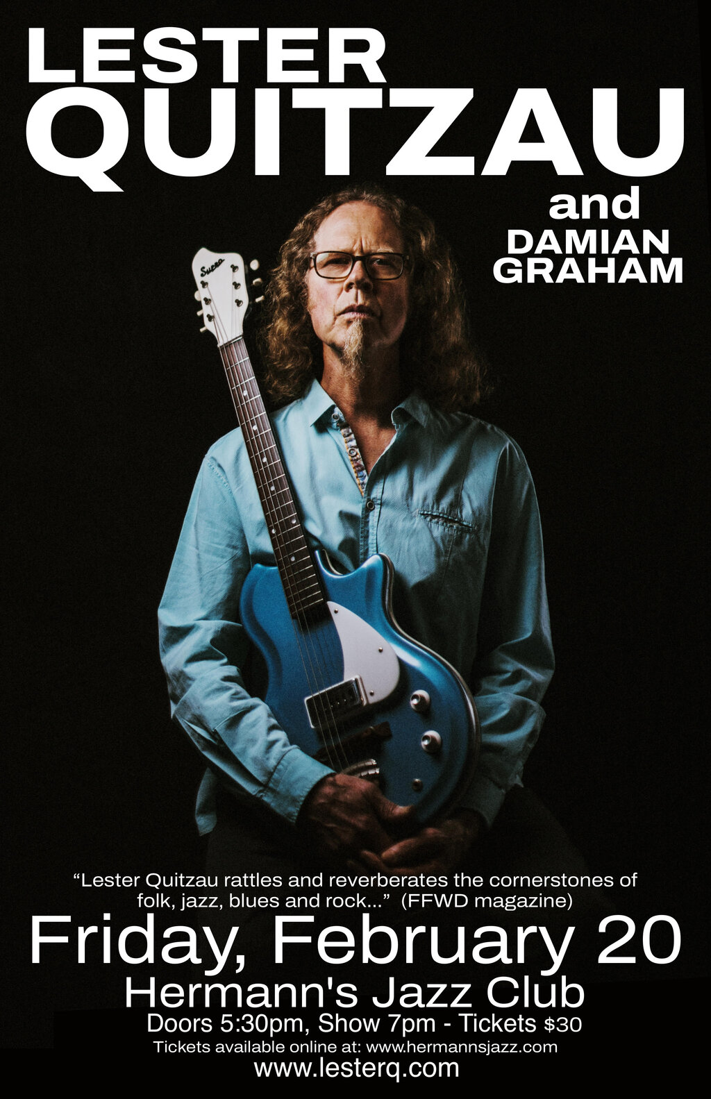 Canadian blues broadcasting guru Holger Petersen sums up his appreciation of Quitzau’s talents by reminding us that “Lester’s slide playing is in that rarified category and he has that great combination of skill, tone, and studied knowledge. He’s a class artist, whose music has a direct connection to the heart and soul.”