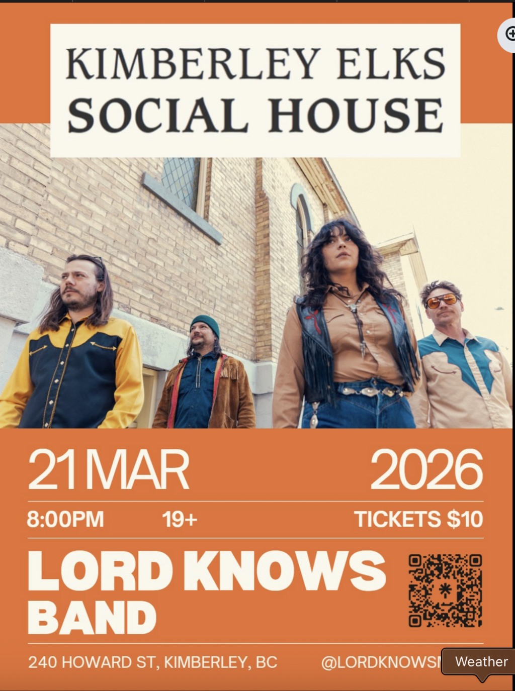 Sat. March 21st Kimberley Elks Social House Kimberley BC $10
