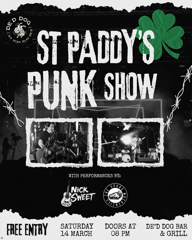 The Spud Mackenzies are back for their second St. Patrick’s Day takeover at the dog! If you were here last time, you already know the drill. High kicks, mosh pits, fast riffs and a whole lotta sham-rock! 🤘☘️