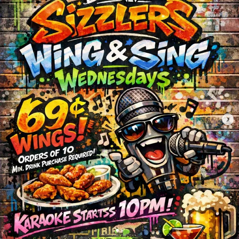 🎀 WING AND SING WEDNESDAY 🎡 - Feb 3rd @ Sizzlers
